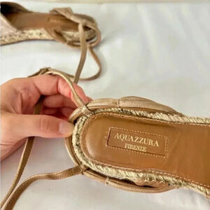 Aquazurra Leather Metallic Knot Strappy Espadrille Sandals Size 6.5