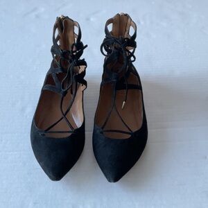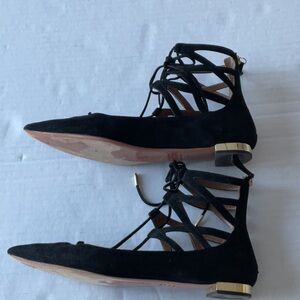 Aquazzura Belgravia lace up flats black suede Size 39 US size 9)