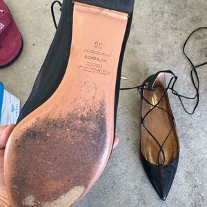 Stylish black lace-up flats by Aquazzura. Perfect for any occasion. Only worn a handful of times.