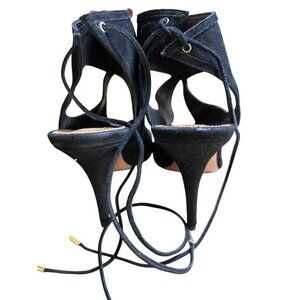 Aquazzura Black Suede Ankle Strap w Tie Heels Sandals Formal Shoes Size It 38.5
