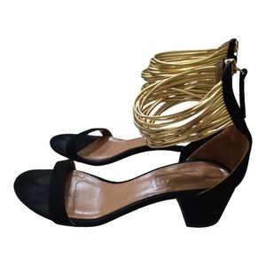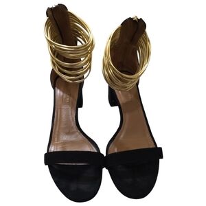 Aquazzura Black Suede Block Heels w/ Gold Multiple Straps at Ankle Back Zip 7.5