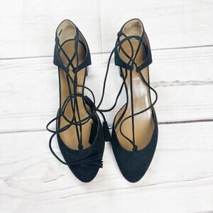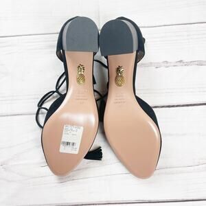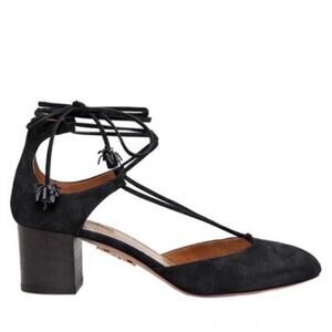 🆕 Aquazzura Boheme Suede Lace-up Block-heel Pumps Almond Toe In Black Size 41