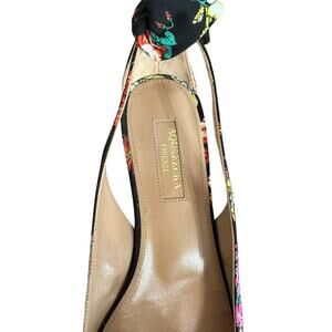 Aquazzura Bow Tie Floral Ballet Flats Size 36 Multicolor Pointed Toe