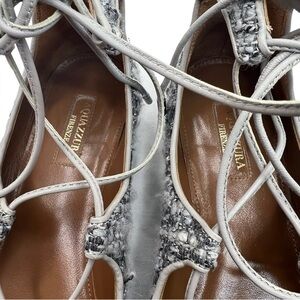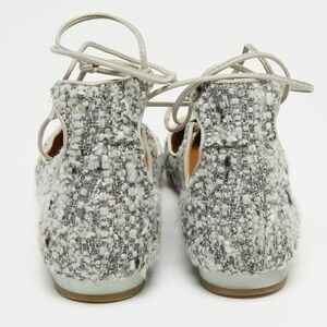 Aquazzura Christy Tweed Lace-up Ballet Flats Size 40.5 Grey/Black Ankle…