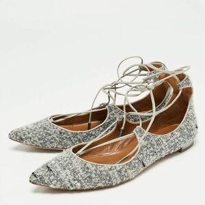 Aquazzura Christy Tweed Lace-up Ballet Flats Size 40.5 Grey/Black Ankle…