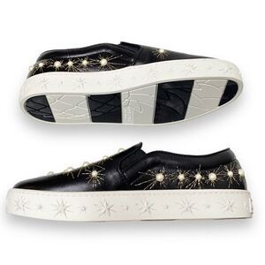 Aquazzura Cosmic Embellished Embroidered Leather Slip-On Sneakers Women’s Siz 37