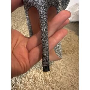 Aquazzura Eclair Bootie 105 Silver Metallic Lurex Peep Toe Stiletto Heel 36.5
