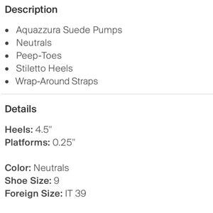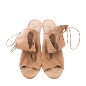 Aquazzura Firenze Tan Suede Leather Open Toe Tie Back Ankle Cuff Stiletto Heels size 39. Decent used condition, please see photos.
