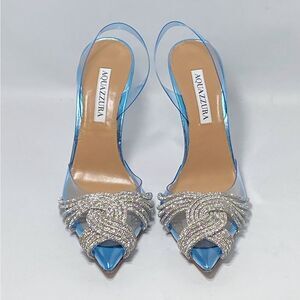 Aquazzura Gatsby Crystal-Embellished Slingback pumps size 38