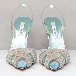 Aquazzura Gatsby Sling 105 Iridescent Blue Slingback Heels, Size 39 (9 US)
