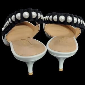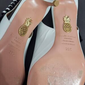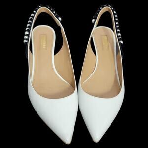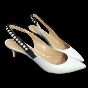 Aquazzura Love Story 45 Pumps White Slingback Pointy Kitten Heel Beaded 39.5 9.5
