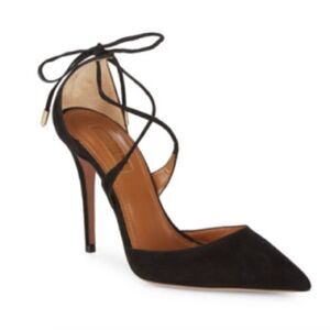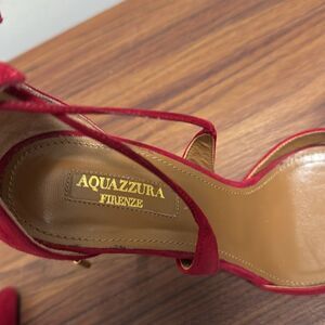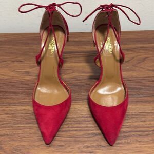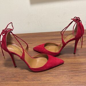 Aquazzura Matilde Crisscross Tie Back Pointed Toe Red Suede Pump. Size 37.5.