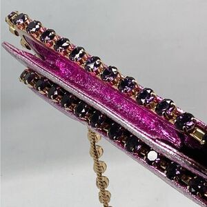 Crafted in Italy of luxe goat leather, Aquazzura's Galactic Crystal shoulder bag features a structured flap silhouette and metallic snakeskin print. This style is finished with goldtone hardware and sparkling chunky crystal trim.