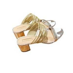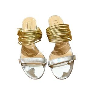 Aquazzura Rendez Vou Metallic Mirrored Slide Sandal 38 or 7.5