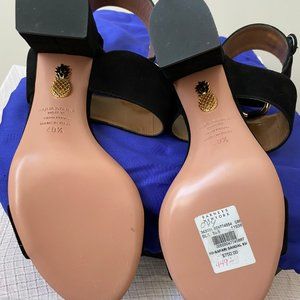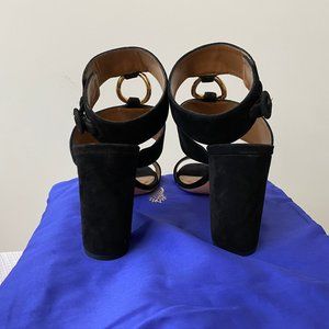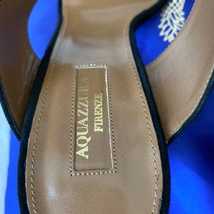 Never been worn Aquazzura Safari City Sandals Black Suede. They come with the original dust bag and box. They never fit me and then certainly did not after my foot grew one whole size during my pregnancy and after the birth of my daughter.