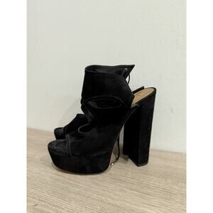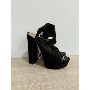 Aquazzura Sexy Thing Suede Ankle Strap Cutout Chunky Platform Heels Black EU 39