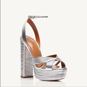 New in box Aquazzura Sundance Plateau Platform Heels in silver. Minor spots from being in storage but still new never worn.