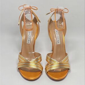 Aquazzura Ari Metallic Leather Ankle-Tie Sandals size 38.5