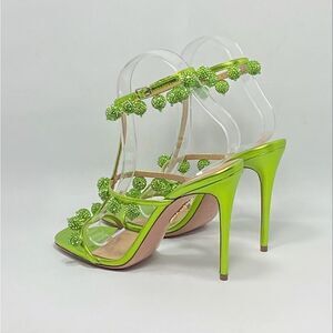 Aquazzura Cha Cha Cha Metallic Leather Sandals size 37.5