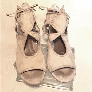 Designed from beige suede, these sandals, with cut-out details, ties, 3.5” wedge heels, are the perfect choice to rock a chic look.