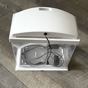 Barely used, clean and only has a couple minor scuffs on the plastic, not noticeable when in use at all. Bought for $50 from Petco.