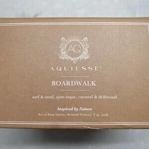 Aquiesse scented 2 oz votive luxury candles in the scent "Boardwalk". This is for a brand new box of 4 votives.