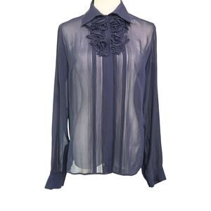 Aquilano Rimondi, silk blouse, designer blouse, Italian designer, handmade blouse, sheer blouse, ruffle blouse, navy silk top, IT 44 US 8, luxury blouse