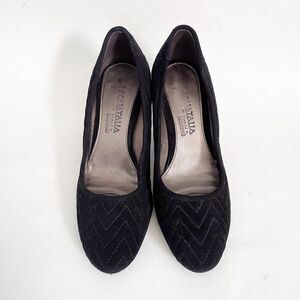 Aquitalia black pumps, size 6. Classic with a bit of visual interest in the quilted stitching. 3” heel. Excellent preowned condition.