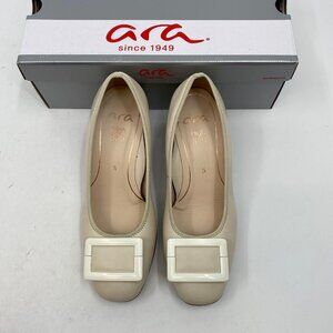 Elevate your style with these Ara beige leather block heels, perfect for any occasion. Their sleek design and comfortable arch support make them a versatile addition to your wardrobe. Slip them on and feel the difference as you transition seamlessly from day to night, whether you're at a brunch or a dinner date.