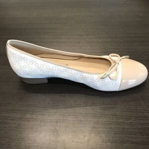 Ara Belinda White Leather & Nude Patent Leather Ballet Flat w/ Bow Women’s US 7