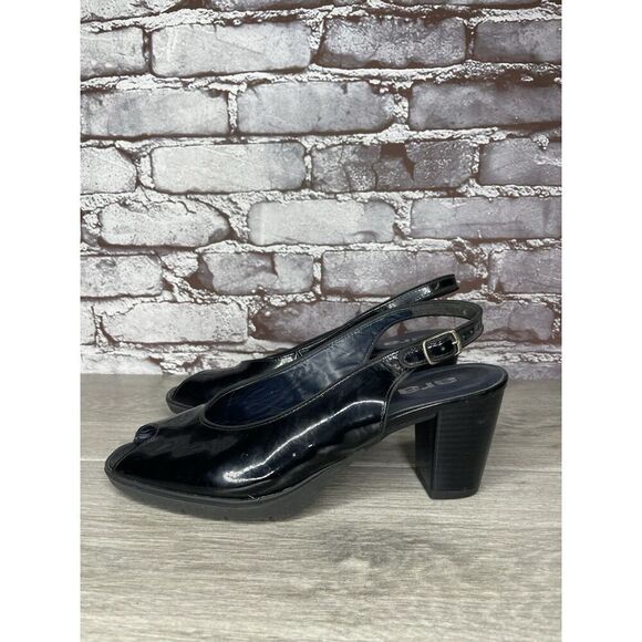 Ara Black Patent Leather Peep Toe Strap Pump Heels Women Sz 8.5M US/39EU