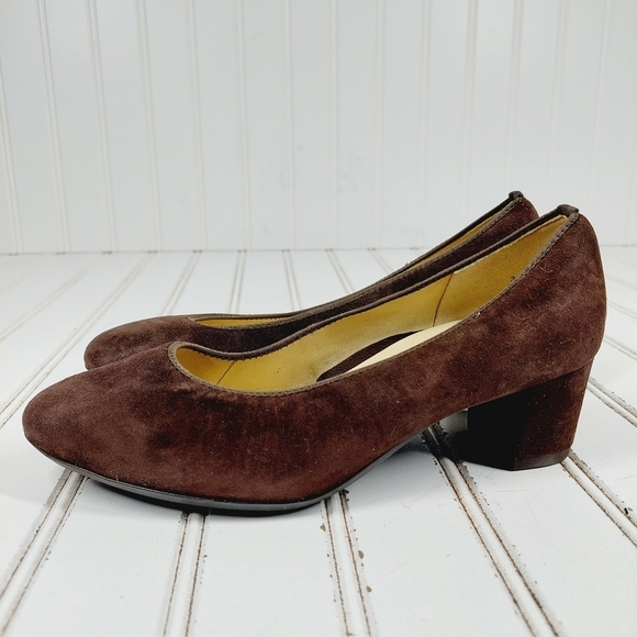 Ara Brown Suede Soft High Casual Slip On Block Heels K413