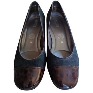 Ara Luftpolster Black Suede 2.25" Chunky Heel Pumps Tortoise Shell Toe Size 6.5
