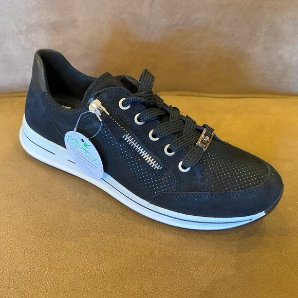 The Ara Oleanna is a casual women's suede sneaker style walking shoe with a side zipper for easy on and off.