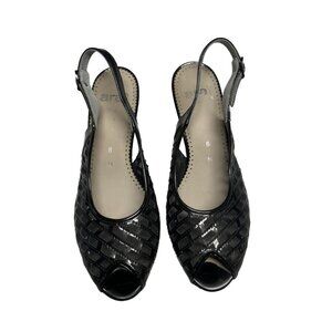 Ara Slingback Peeptoe Heels Shoes Black Women's 8.5