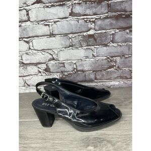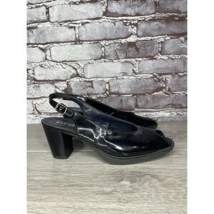 Selling Ara Black Patent Leather Peep Toe Strap Pump Heels Women Sz 8.5M US/39EU/6UK