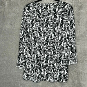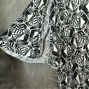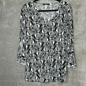 Arabella 3X Shirt Top Black Geometric Split Bell 3/4 Sleeve V Neck Stretch Women