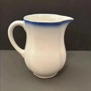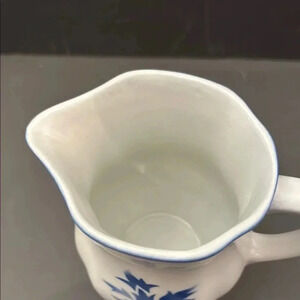 Arabia Blue and White Ceramic Pitcher with Floral Thistle Design