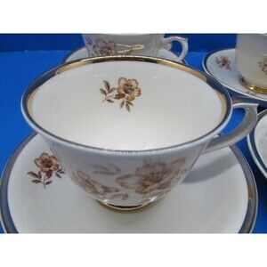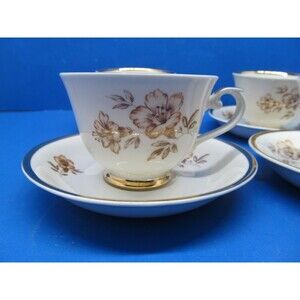 Arabia Finland Myrna 4 Footed Cups And 4 Saucers EC Produced From 1998-2000 You Will Be getting 4 Saucers And 4 Footed Cups In Very Good Condition. No Issues. They Will Be Wrapped Carefully And Fully Insured. They Come From A Smoke Free Environment. They Are Discontinued. They Were Produced From 1998-2000 Only.