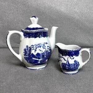 Arabia of Finland Vintage Coffee Tea Pot Creamer Blue Castle
