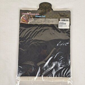 This is a bundle of a computer mouse pad and 4 matching drink coasters. In the style of an Arabic rug with fringed ends. Use as a decor piece everyday in your home or office. Or give as a gift.