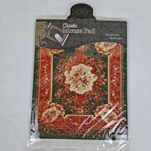 Arabic Rug Mouse Pad with Set of 4 Matching Coasters Green, Oange White NWT