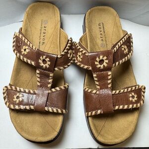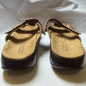 Aragon Comfort Engineering By New Balance Brown Leather Slip On Sandals Size 5B in excellent condition