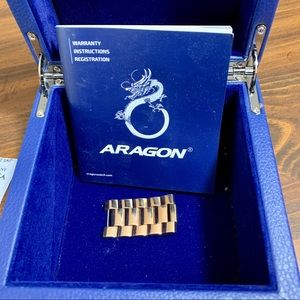 This is an Aragon Vertigo Big Date Mesh Bracelet men’s dress watch with a 47mm dial with quartz movement. This watch is completely rose gold and very sleek and stylish. This watch has been used, but is in excellent working condition with no scratches or other faults. This does require a working battery (not included). The blue box is included and is also in great condition as well as extra links and papers! The price is negotiable within reason.