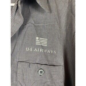 Aramark US Airways Plus Sz 1XLR Gray Checkered Unisex Button Down Shirt
