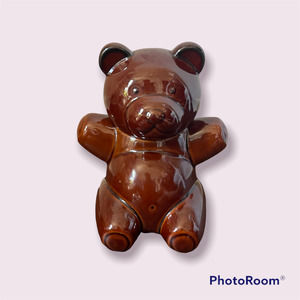 Aramis Brown Bear Cookie Jar Glossy Finish This listing includes a brown bear cookie jar by Aramis, made in Japan. This gorgeous piece features a lustrous deep brown glaze. The jar measures at around 8 inches in height, around 5 1/2 inches in length, and 6 1/2 inches in width. This item is in Excellent Condition