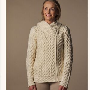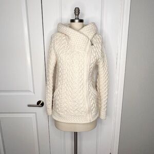 Aran Cable Knit Hoodie Sweater With Celtic Side Zip Small Cream 100% Merino Wool