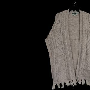 This item is an Aran Craft Merino Wool Shawl Fringe Trim in the color Parsnip. It is a Missy One Size. This item has never been worn. It does not have attached tags but does have the original packaging that it came with. I opened the packaging in order to take photos and measurements for this listing.