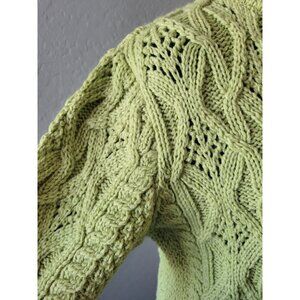 Aran Craft Neon Green Merino Wool Long Sleeve Cable Knit Button Down Sweater S