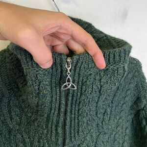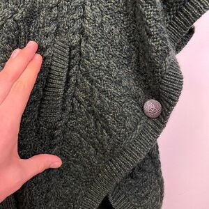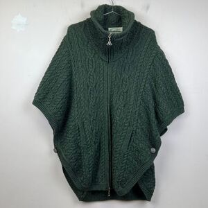 Aran Crafts 100% Merino Wool Cardigan Poncho Sweater M/L Green Irish